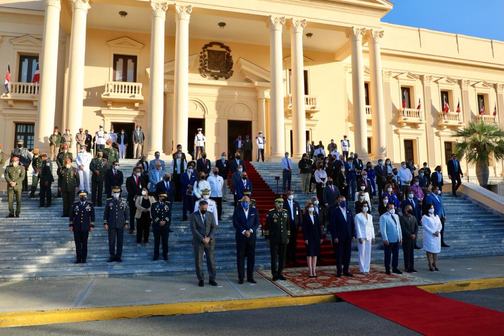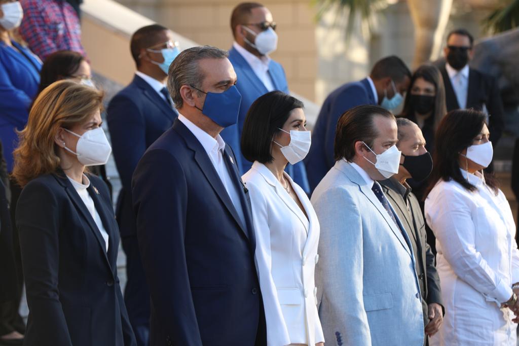 El presidente Luis Abinader, junto a la Primera Dama, la vicepresidenta, ministros, viceministros, directores y funcionarios, rindió hoy honores a la Bandera Nacional en un acto realizado en las escalinatas de la Casa de Gobierno.