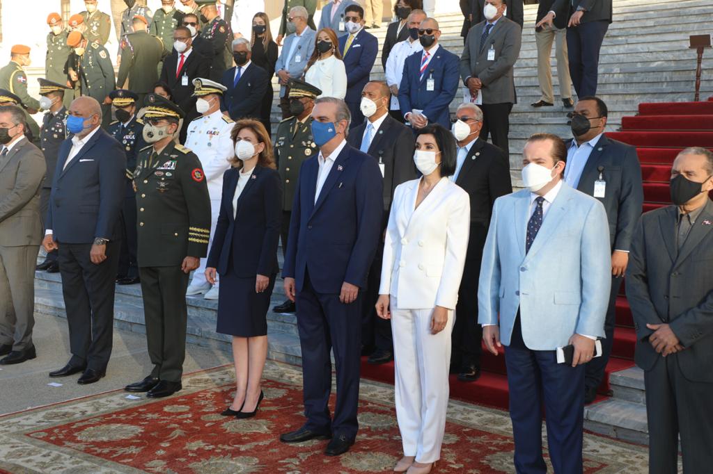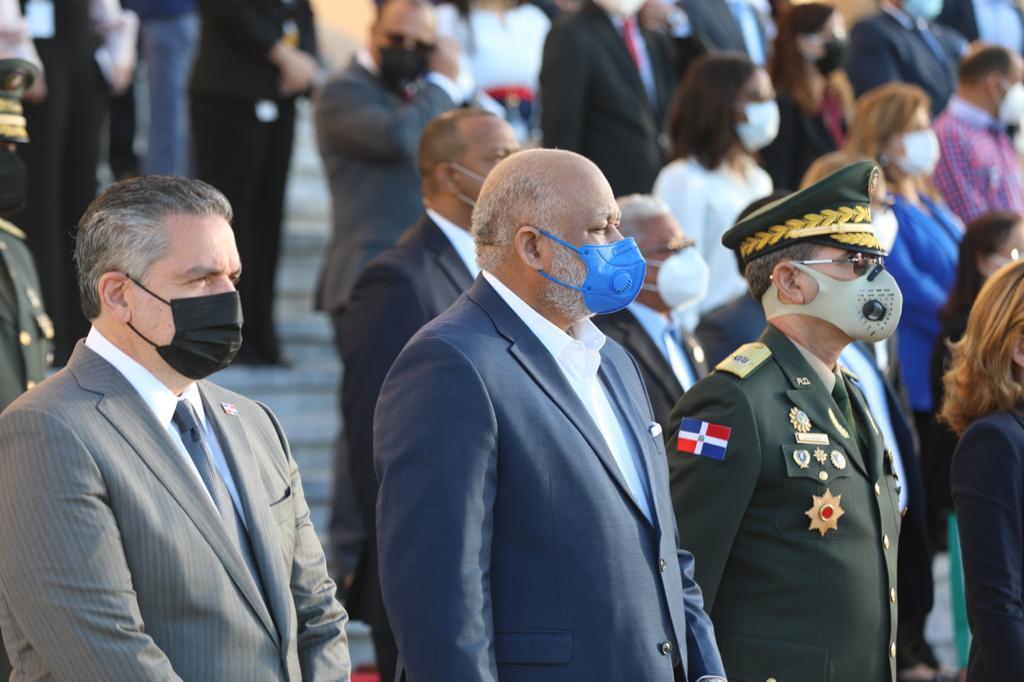 Presentes también, Lisandro Macarrulla, ministro de la Presidencia; José Ignacio Paliza, ministro Administrativo de la Presidencia; teniente general Carlos Díaz Morfa, ministro de Defensa; Roberto Fulcar, ministro de Educación; Neney Cabrera, ministro encargado de los Proyectos Estratégicos y Programas Especiales de la Presidencia; Geanilda Vásquez, ministra sin cartera y Juan Pablo Uribe, presidente de la Comisión Permanente de Efemérides Patrias.
