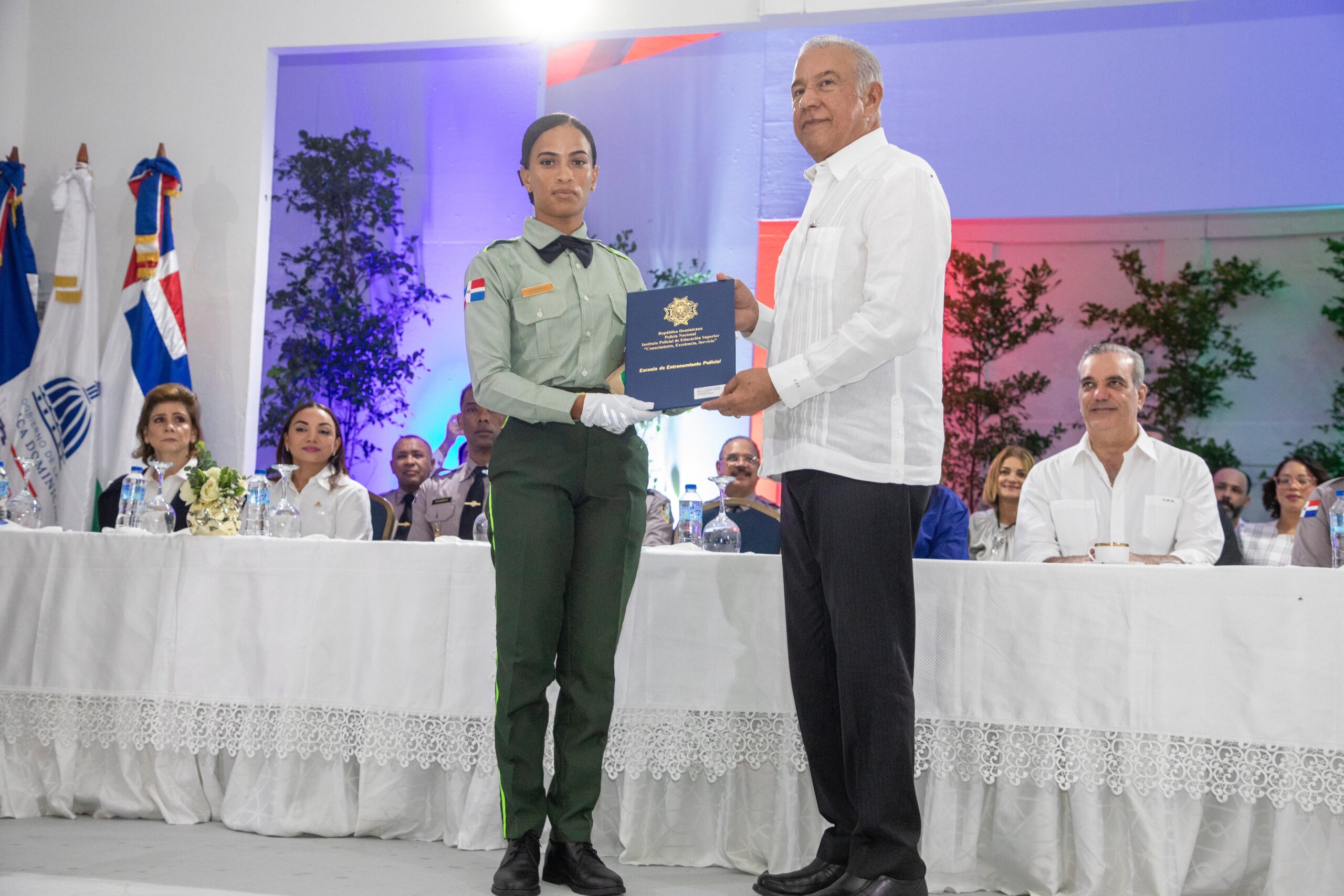 «El país, el gobierno, su gente y toda la República Dominicana espera mucho de ustedes (los nuevos agentes) y estamos seguros que ustedes cumplirán con esos objetivos y con esa aspiración que tiene el país de mejorar y de que los policías de la reforma, como les llaman a ustedes, sean ejemplo de cumplimiento, transparencia, honestidad y de eficiencia».