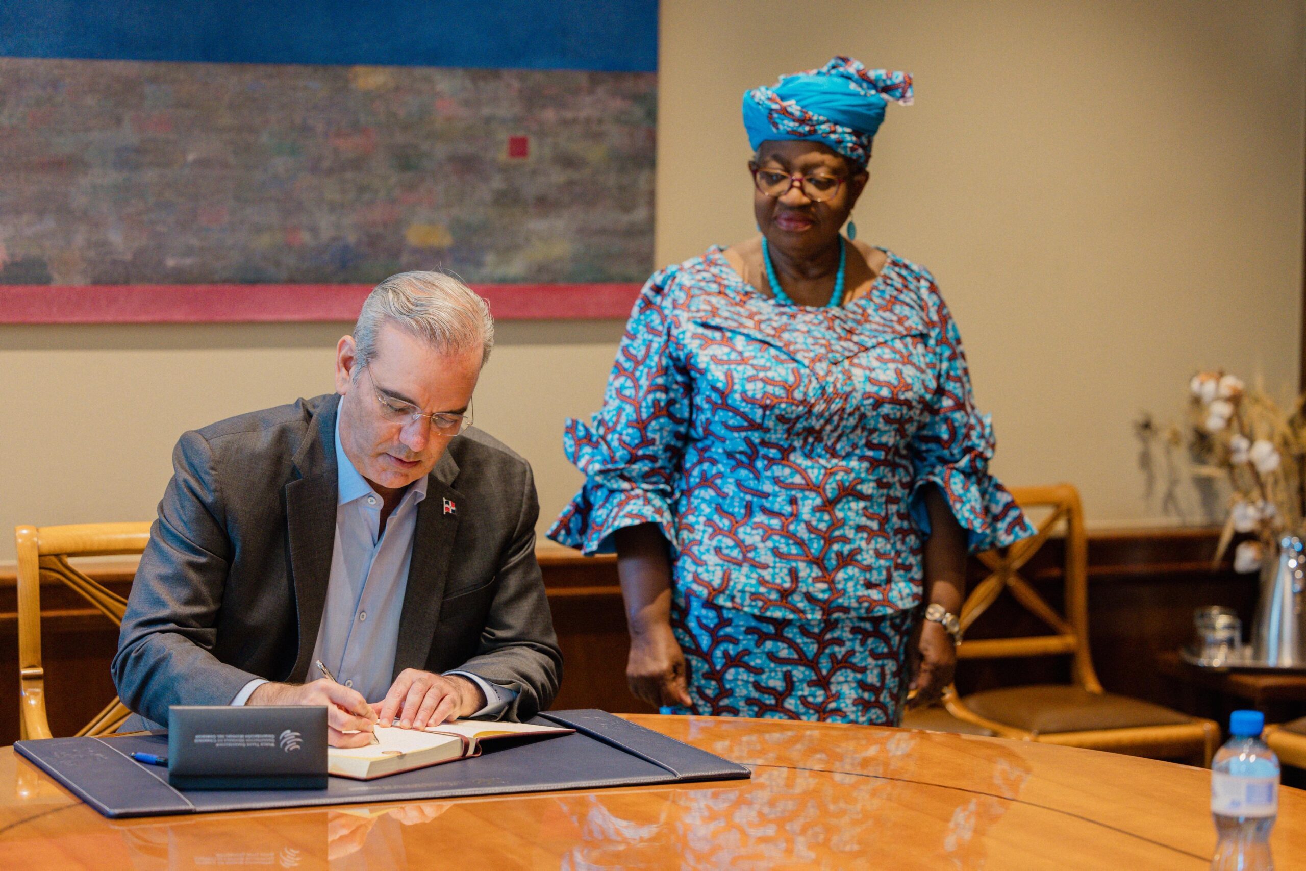 Durante un encuentro sostenido de la funcionaria con el presidente Luis Abinader, quien la visitó en la sede del organismo, la doctora Ngozi Okonjo-Iweala, felicitó al mandatario por los avances que va teniendo República Dominicana, tanto en negocio electrónico, como en la preservación del medio ambiente.