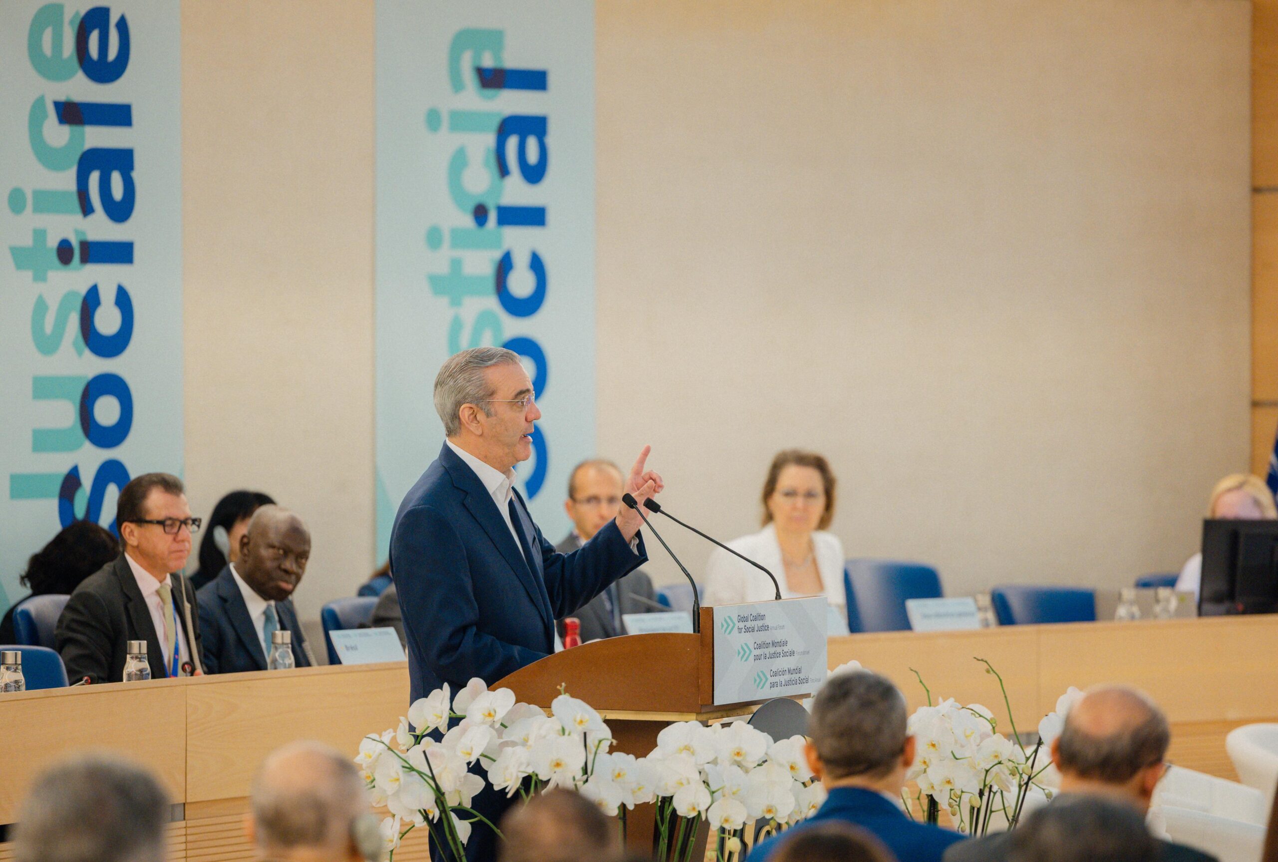 «En la República Dominicana, creemos firmemente que estos valores se concretan en la justicia social, y esta debe ser alcanzada sin enfrentamientos de clases ni discursos que enfrenten a ricos y pobres, sino desde un enfoque de convivencia, respeto y oportunidades para todos», expresó el mandatario durante su intervención en el Foro Anual de la Coalición Mundial para la Justicia Social, celebrado en la sede de la Organización Internacional del Trabajo (OIT).