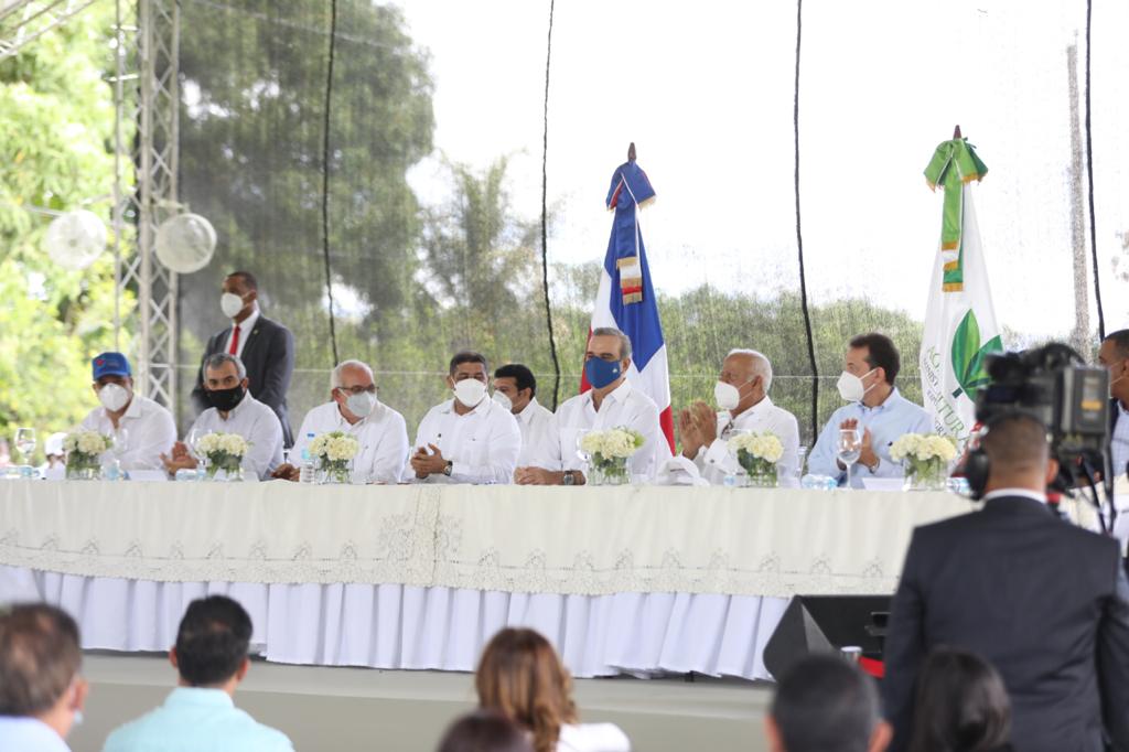 En el acto participaron, Limber Cruz, ministro de Agricultura, Víctor (Ito) Bisonó, ministro de Industria y Comercio, Geanilda Vásquez, ministra sin cartera, Pavel Concepción, presidente de la Asociación Dominicana de Avicultura; el agro empresario Wilfredo Batista, Iván Hernández, director de INESPRE, Fernando Durán, del Banco Agrícola, la gobernadora Nina Candelario, entre otros, y representantes de los productores agropecuarios.