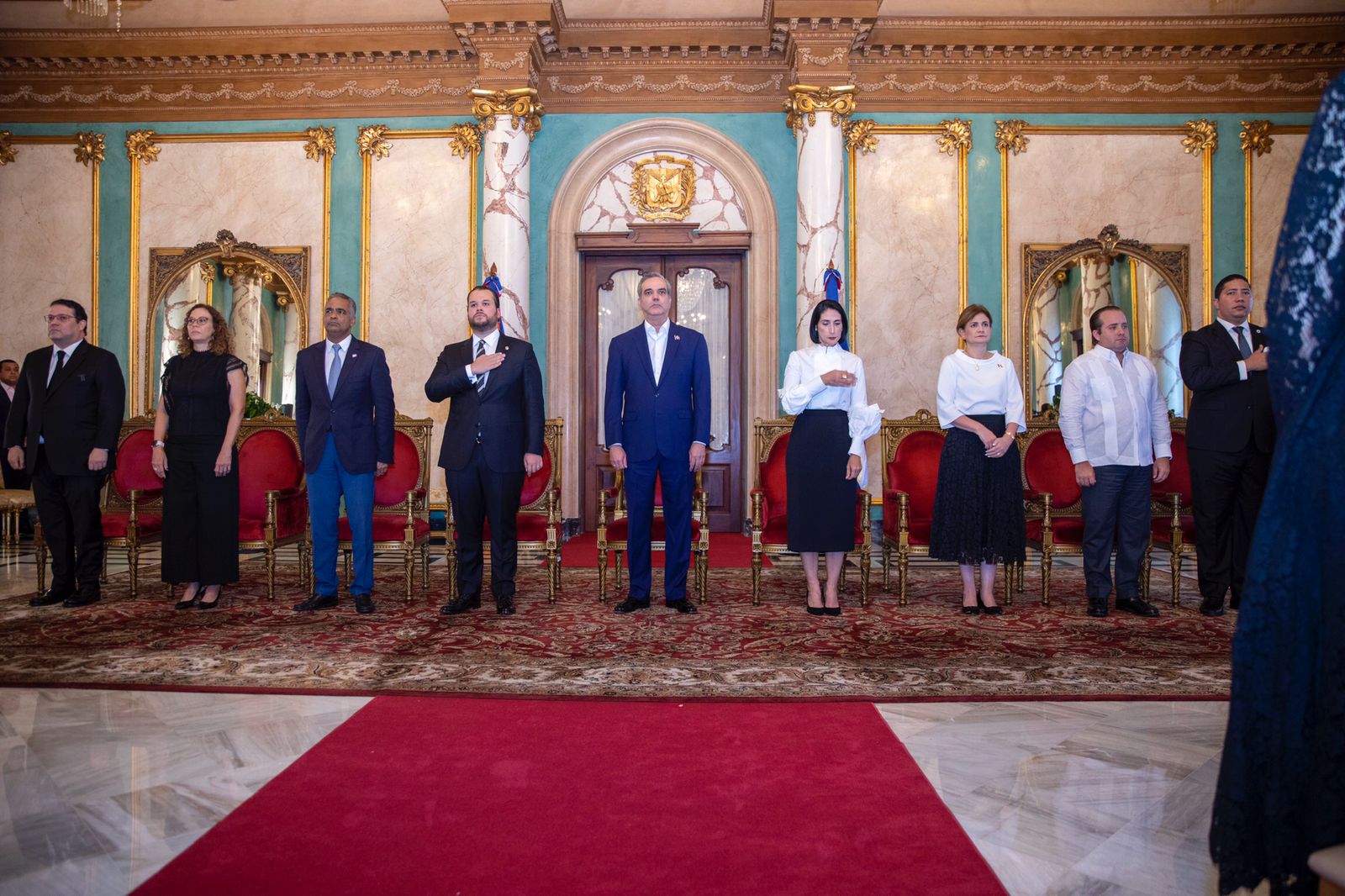 Estuvieron presentes, los ministros, de la Presidencia, Joel Santos; Administrativo de la Presidencia, José Ignacio Paliza; el presidente del Senado, Eduardo Estrella; de la Cámara de Diputados, Alfredo Pacheco; el embajador británico en el país, Mockbul Ali; y los ministros, de Obras Públicas, Deligne Ascensión; de Industria y Comercio, Víctor -Ito- Bisonó; de Medio Ambiente, Miguel Ceara Hatton, entre otros funcionarios, familiares y amigos.