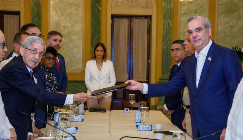 Santo Domingo.– El Consejo Económico y Social (CES) entregó este martes al presidente de la República, Luis Abinader, el Informe Final Consolidado del Diálogo por la Crisis Haitiana y sus implicaciones para la República Dominicana, resultado de seis mesas temáticas en las que participaron representantes del sector social, laboral, empresarial, de la sociedad civil organizada, representantes del presidente y representantes de los tres expresidentes.