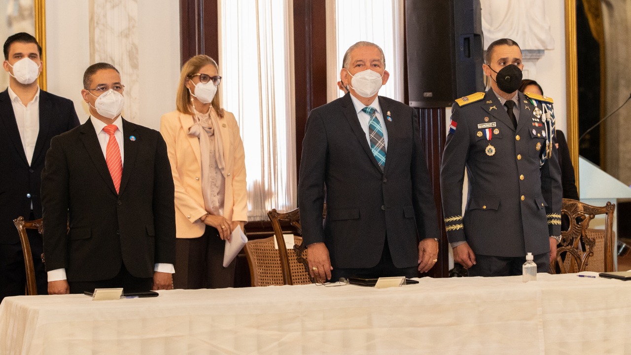 En el acto de firma de convenio, realizado en el salón Las Cariátides del Palacio Nacional participaron la vicepresidenta, Raquel Peña y los ministros de la Presidencia, Lizandro Macarrulla; Administrativo de la Presidencia, José Ignacio Paliza; y de Defensa, Carlos Luciano Díaz Morfa.