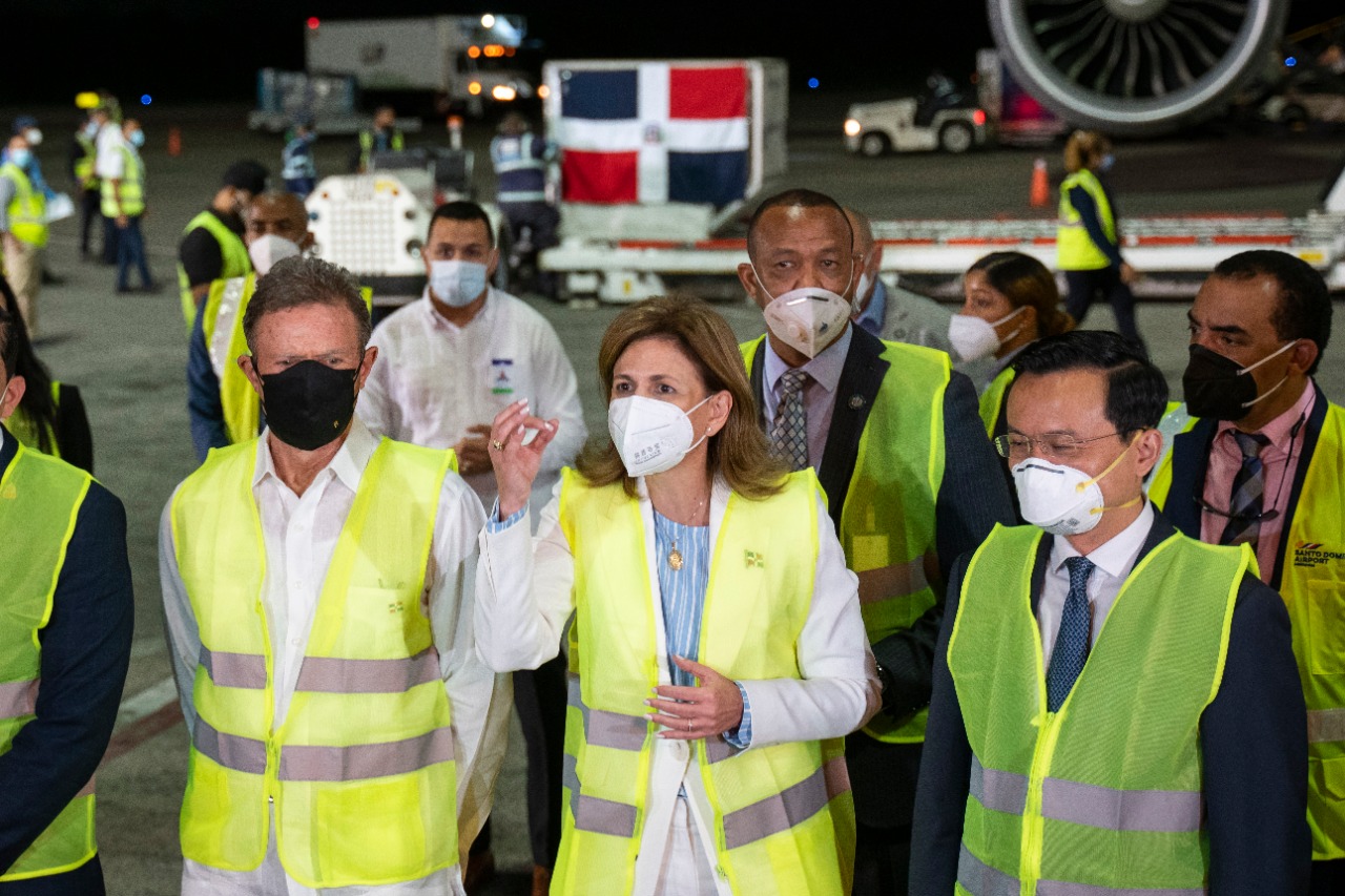 Santo Domingo, R.D.- El gobierno dominicano recibió hoy en la persona de la vicepresidenta de la República, Raquel Peña 768 mil dosis de vacunas anti COVID-19, procedentes de la República Popular China, anunciadas por el presidente Luis Abinader el pasado 11 del mes en curso.