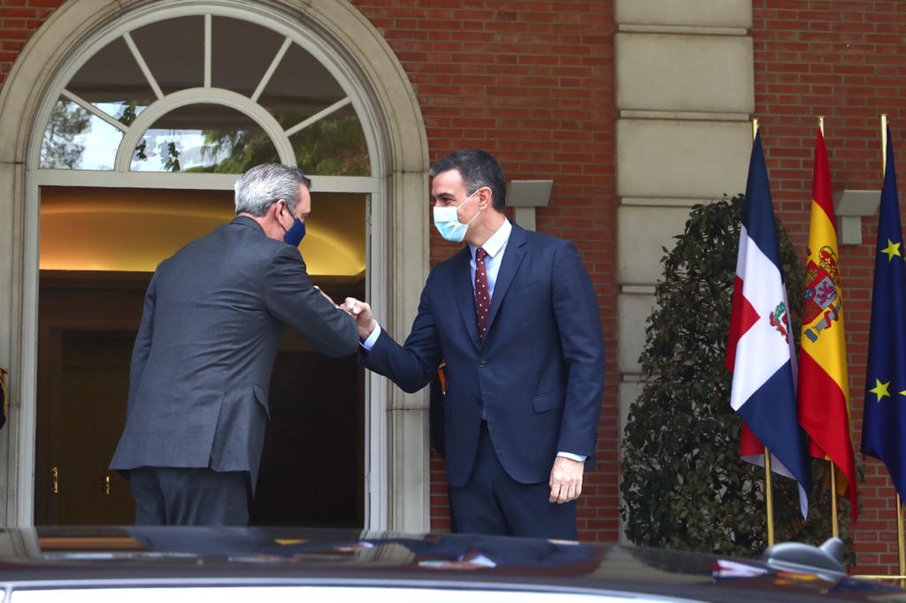 El presidente de España, Pedro Sánchez, recibe a su homólogo dominicano Luis Abinader en el Palacio de la Moncloa.