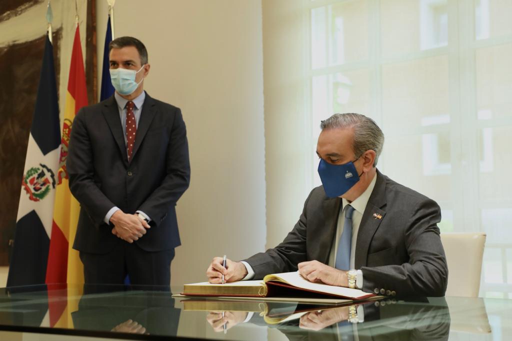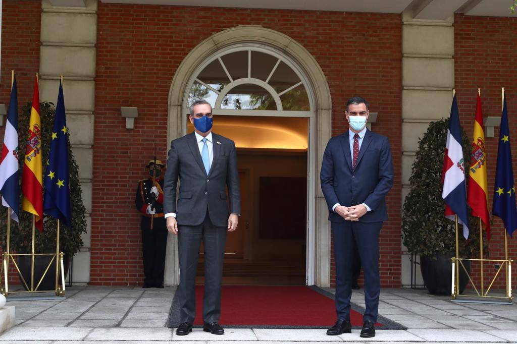 Madrid, España.- El presidente Luis Abinader fue recibido hoy por el presidente del gobierno de España, Pedro Sánchez, en el Palacio de la Moncloa, como parte de la visita oficial del mandatario dominicano.