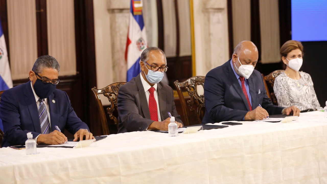 El presidente Luis Abinader encabezó el acto junto a la vicepresidenta, Raquel Peña, mediante el cual el Estado dominicano, a través del Parque Cibernético de Santo Domingo, firmó el “Programa Fabricación en RD: servicios postventa de dispositivos electrónicos para el sector educación”.