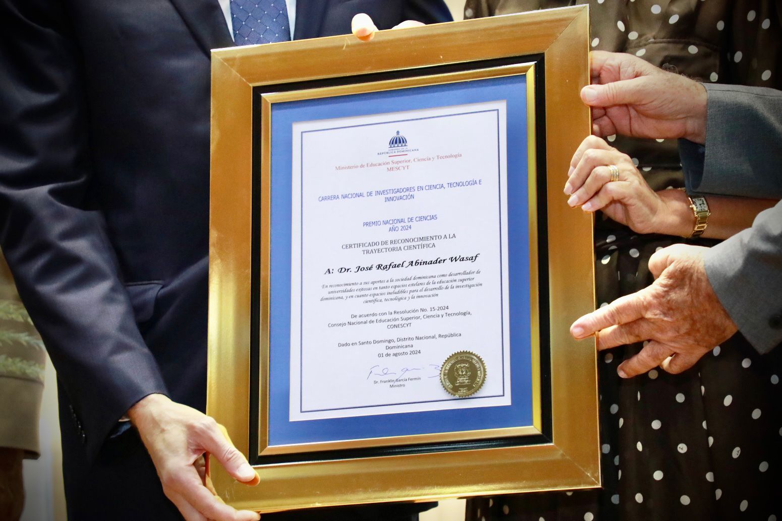 También Peña destacó que estos premios rinden un merecido homenaje póstumo a tres grandes hombres que, con su visión y liderazgo, fueron pioneros en la creación de espacios para el desarrollo del conocimiento científico en la República Dominicana.