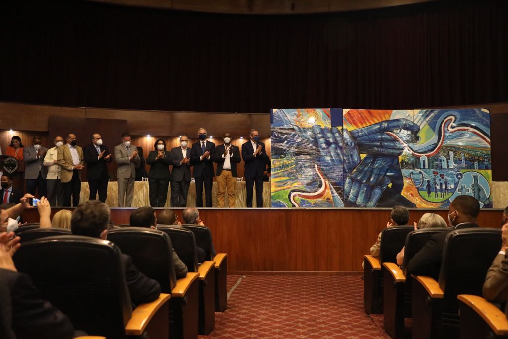 Al finalizar el acto, se develizaron tres lienzos del artista Pedro Beras, que con las manos entrelazadas simbolizan el inicio del pacto social y representan el compromiso del gobierno para ejecutar las transformaciones legales necesarias en el ámbito laboral y de la seguridad social.