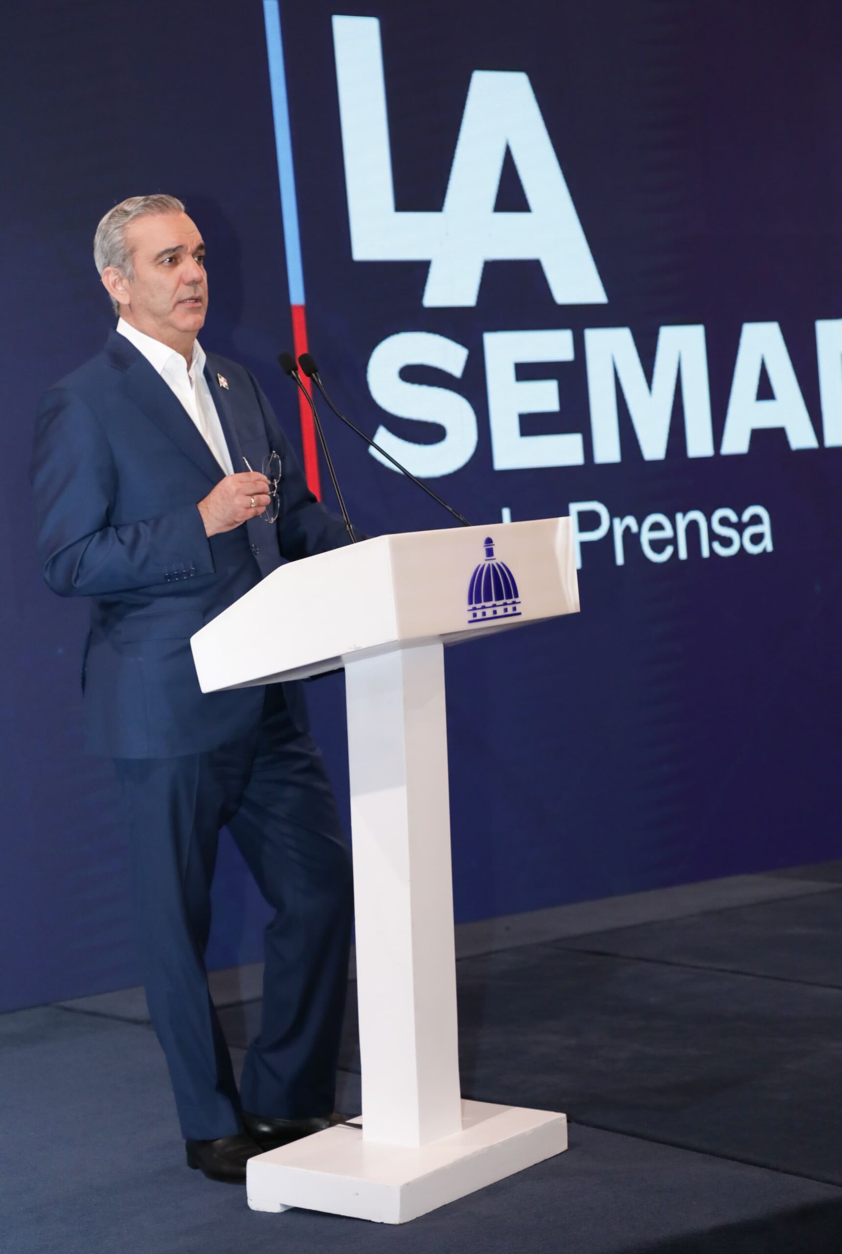 La presentación se realizó en el marco de La Semanal con la Prensa, bajo el tema central: «Libre competencia, motor del desarrollo», celebrada en el Salón Las Cariátides del Palacio Nacional.