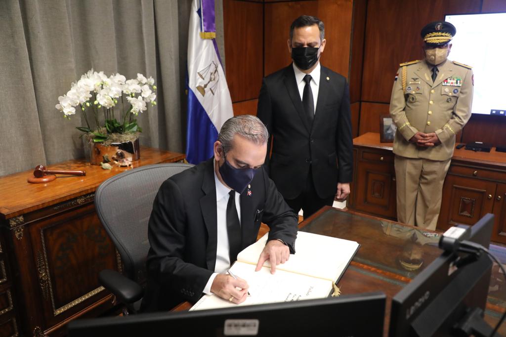 Previo a la audiencia, el mandatario fue recibido por el presidente de la SCJ, Luis Henry Molina, con quien sostuvo un breve encuentro en su despacho, donde firmó el libro de visitantes distinguidos.