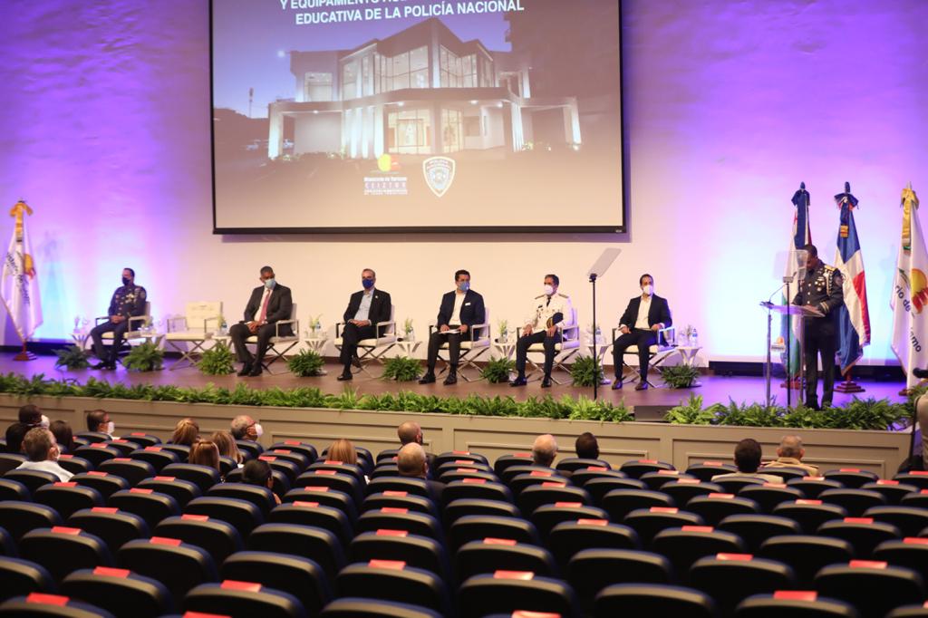 El presidente Luis Abinader encabezó este martes la inauguración del primer Auditorio Policía Nacional, ubicado dentro de la Plaza Educativa Policial, que servirá para la realización de actos, charlas y la capacitación de los miembros de