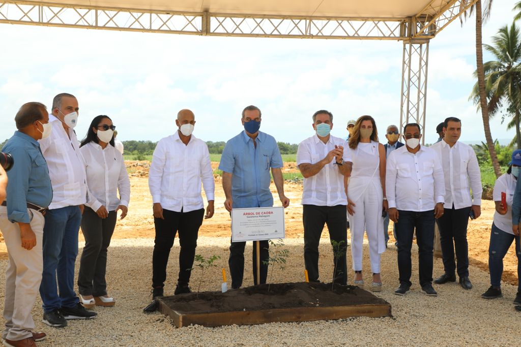 NAGUA.- El presidente Luis Abinader dio el primer palazo para la construcción de un moderno modelo de gestión integral de residuos sólidos, en el cruce de Panchito, Nagua, provincia María Trinidad Sánchez, luego supervisó el proceso de vacunación contra el Covid.