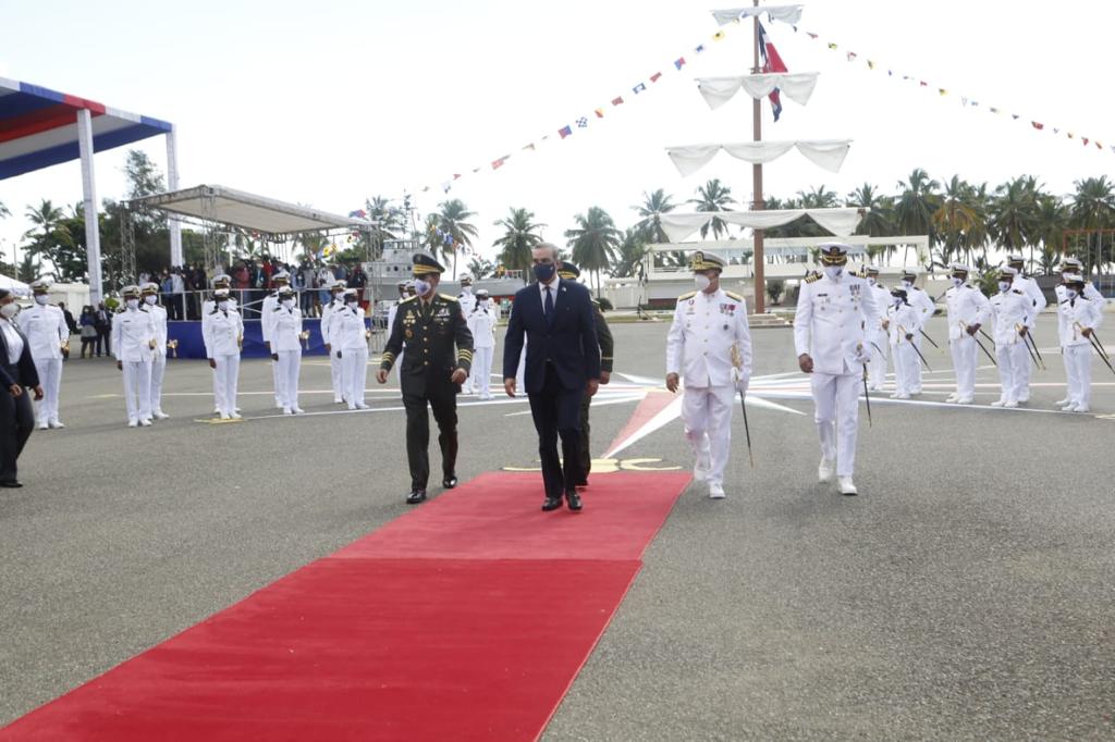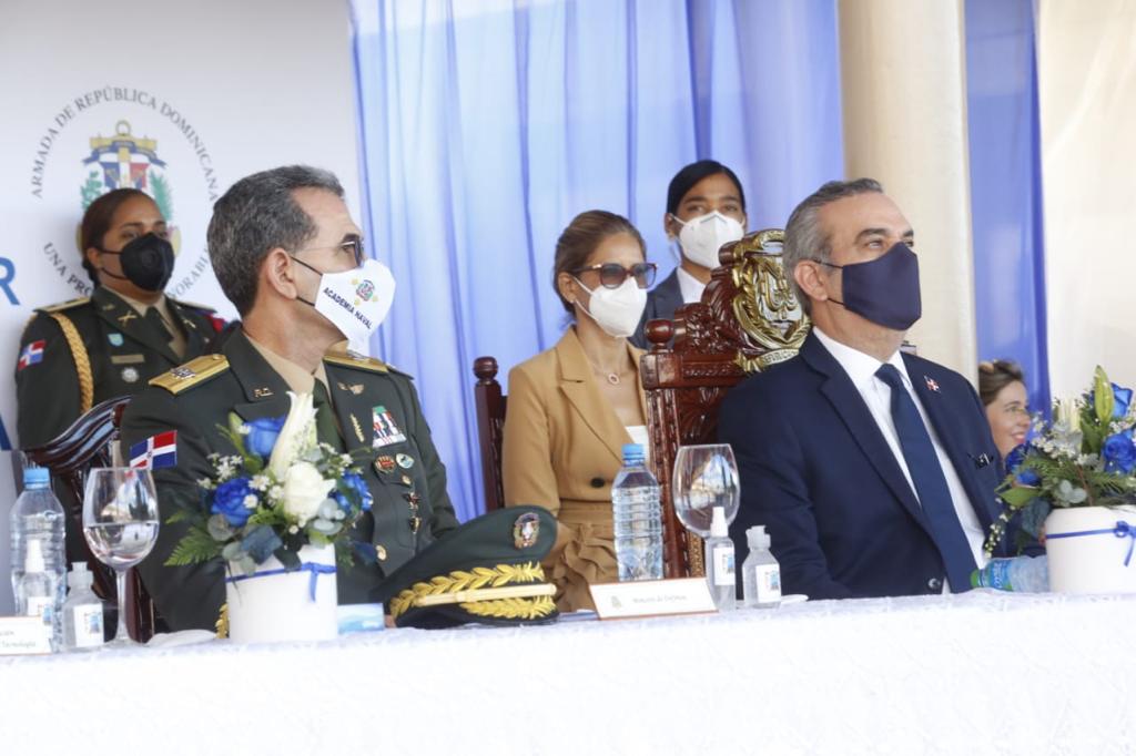 En el acto acompañaron al presidente Abinader, teniente general Carlos Luciano Díaz Morfa, ministro de las Fuerzas Armadas; mayor general Víctor Mercedes Cepeda, viceministro de Defensa para Asuntos Militares; vicealmirante Joaquín Augusto Peignand Ramírez, viceministro de Defensa para Asuntos Navales y Costeros; mayor general Juan Manuel Jiménez García, viceministro de Defensa para Asuntos Aéreos y Espaciales y José Manuel Castillo, inspector general de las Fuerzas Armadas.