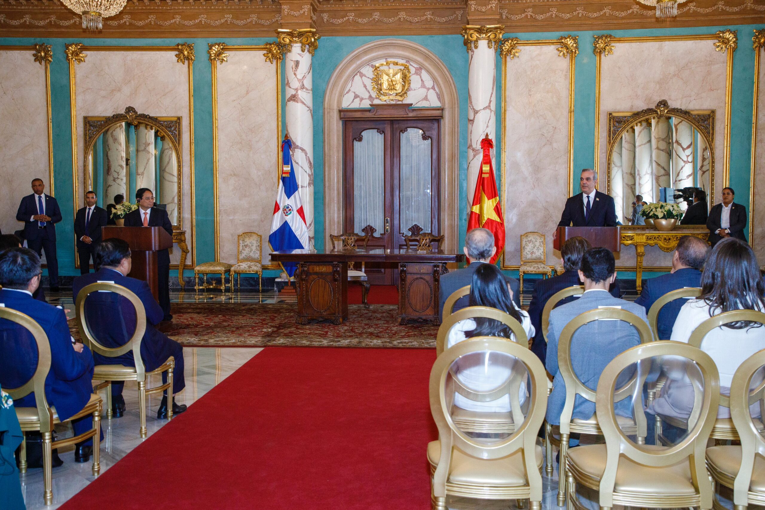 Al dirigir unas palabras a los presentes, el presidente Abinader agradeció la presencia del Primer Ministro de Vietnam junto a su delegación y apuntó que ha sido un objetivo estratégico del gobierno dominicano desde que asumió la presidencia en agosto de 2020, «establecer mejores relaciones con la República Socialista de Vietnam», dado que tenían muchos objetivos en común; al mismo tiempo las economías de ambas naciones y las industrias eran complementarias en muchos aspectos.