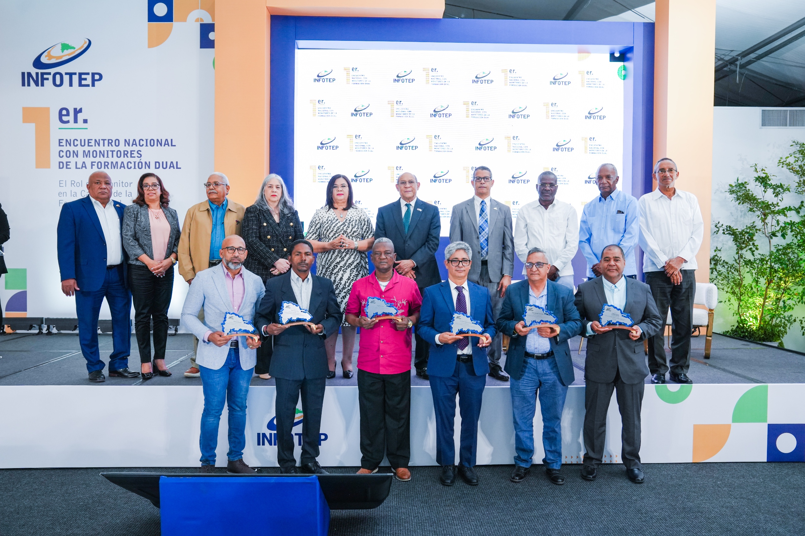 En este encuentro fueron reconocidos seis monitores por su trayectoria y entrega al programa de Formación Dual, entre ellos se destacan José Higinio Jáquez Corona, gerente de post venta de Magna Motors, y Ángel Rosario encargado de producción en la empresa Mantenimiento Mecánico Industrial (Mameisa), quienes tienen 34 años como monitores.
