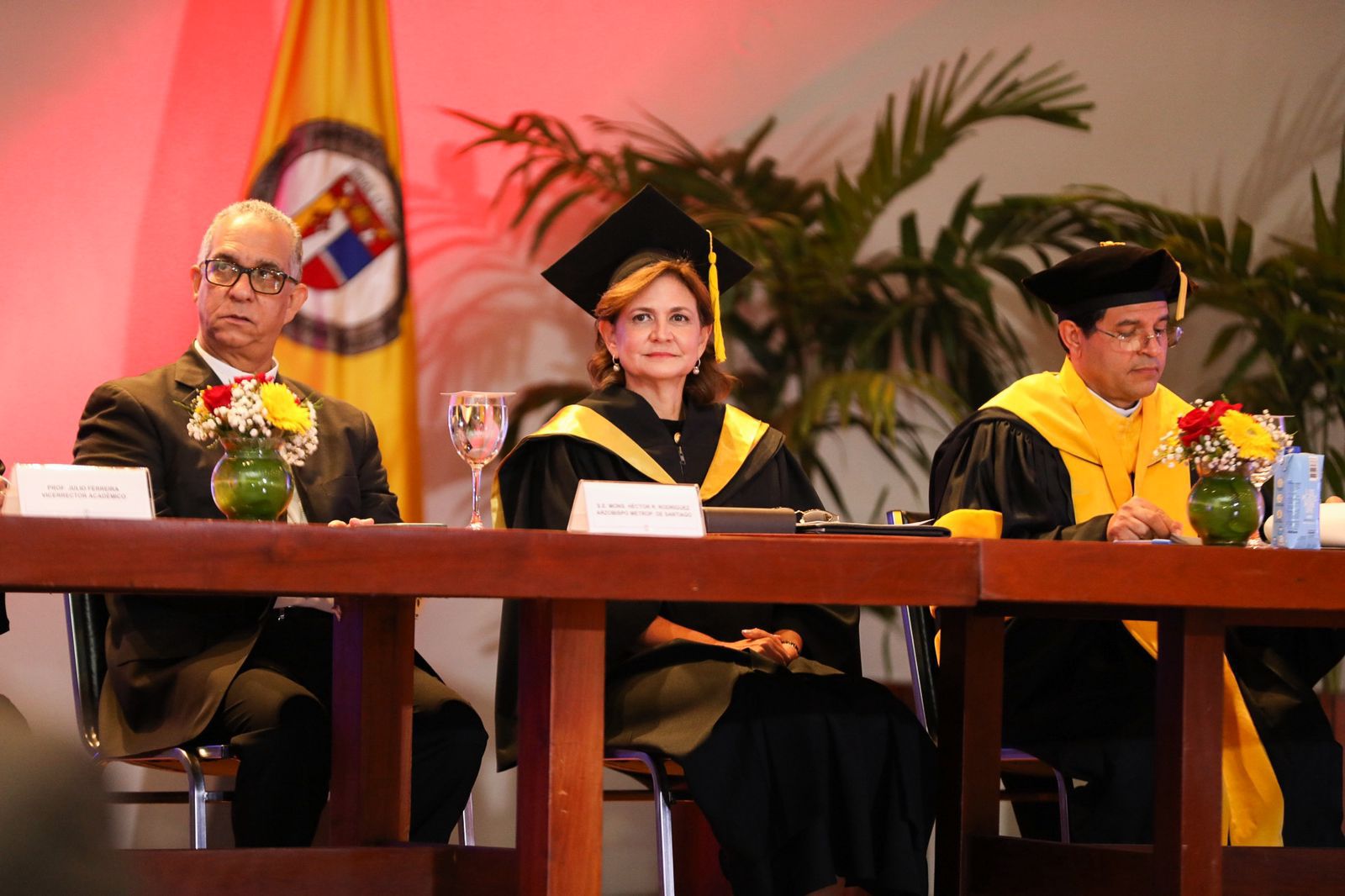 Previamente, la vicemandataria participó de la misa de acción de gracias por motivo del 62 aniversario de la Pontificia Universidad Católica Madre y Maestra.