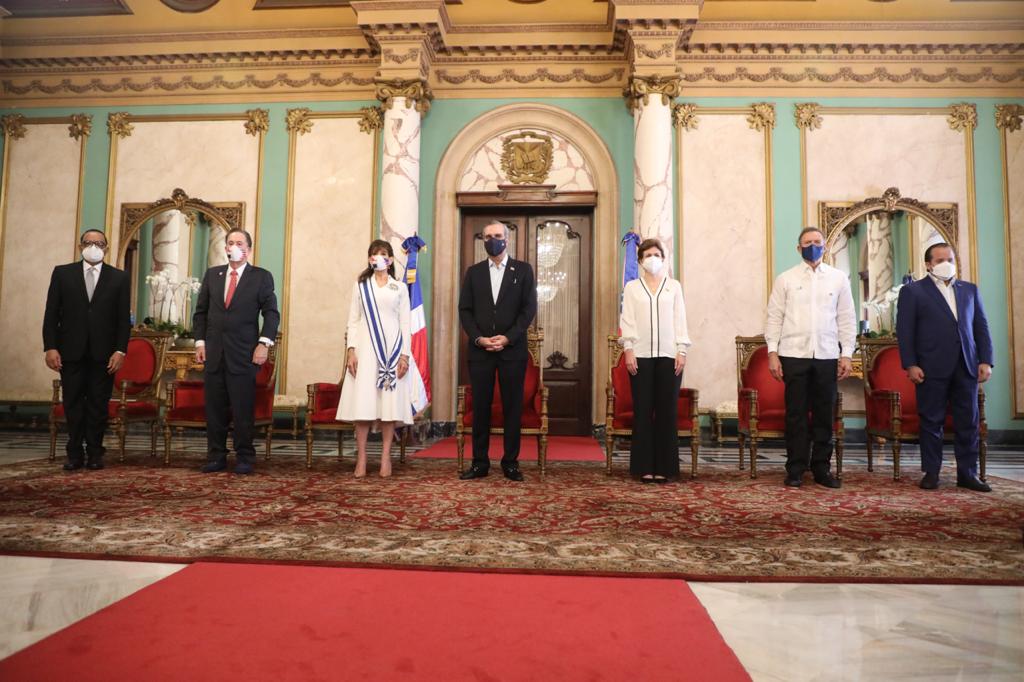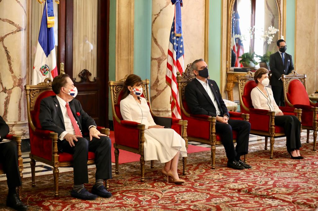Presentes en el acto, junto al presidente Luis Abinader, la vicepresidenta de la República. Raquel Peña; José Ignacio Paliza, ministro Administrativo de la Presidencia; Roberto Álvarez, ministro de Relaciones Exteriores y Antoliano Peralta Romero, consultor Jurídico del Poder Ejecutivo.