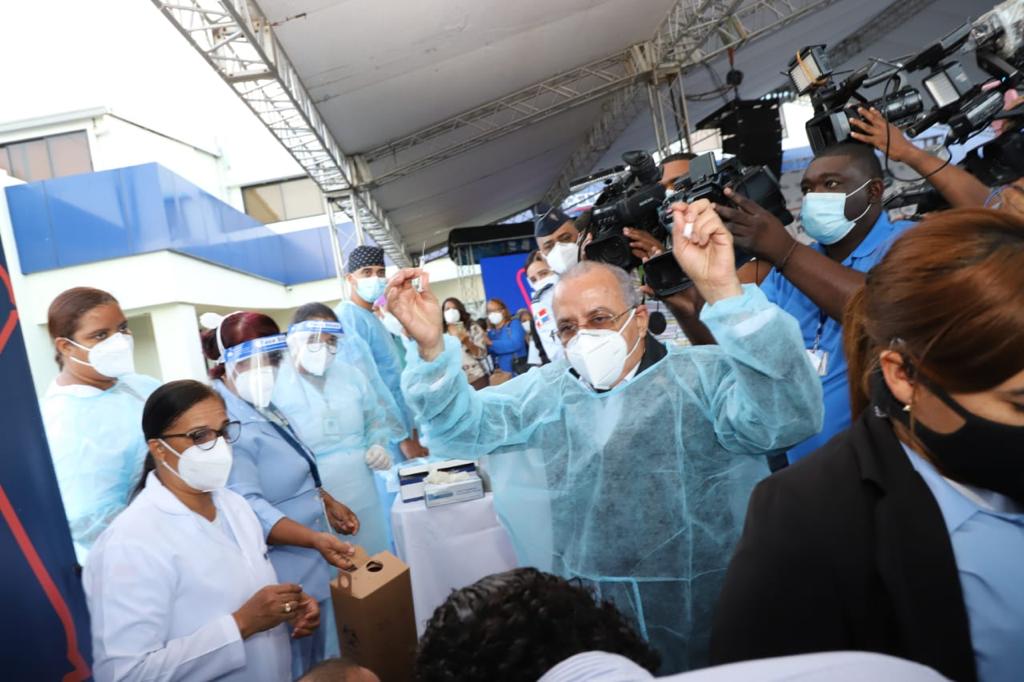 El ministro de Salud, Plutarco Arias  aplicó  la primera vacuna  al médico internista, Ramón Familia Alcántara.