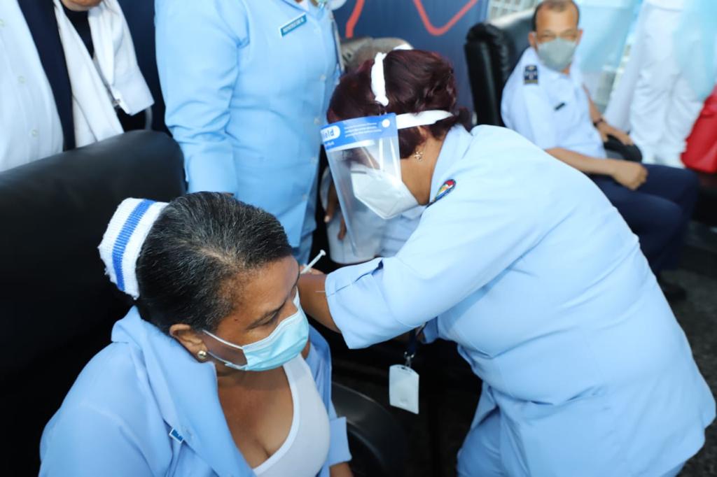 El proceso de inoculación continuó con  la primera teniente Teresa Davis Martínez, quien trabaja como enfermera, específicamente en la Unidad de Cuidados Intensivos.