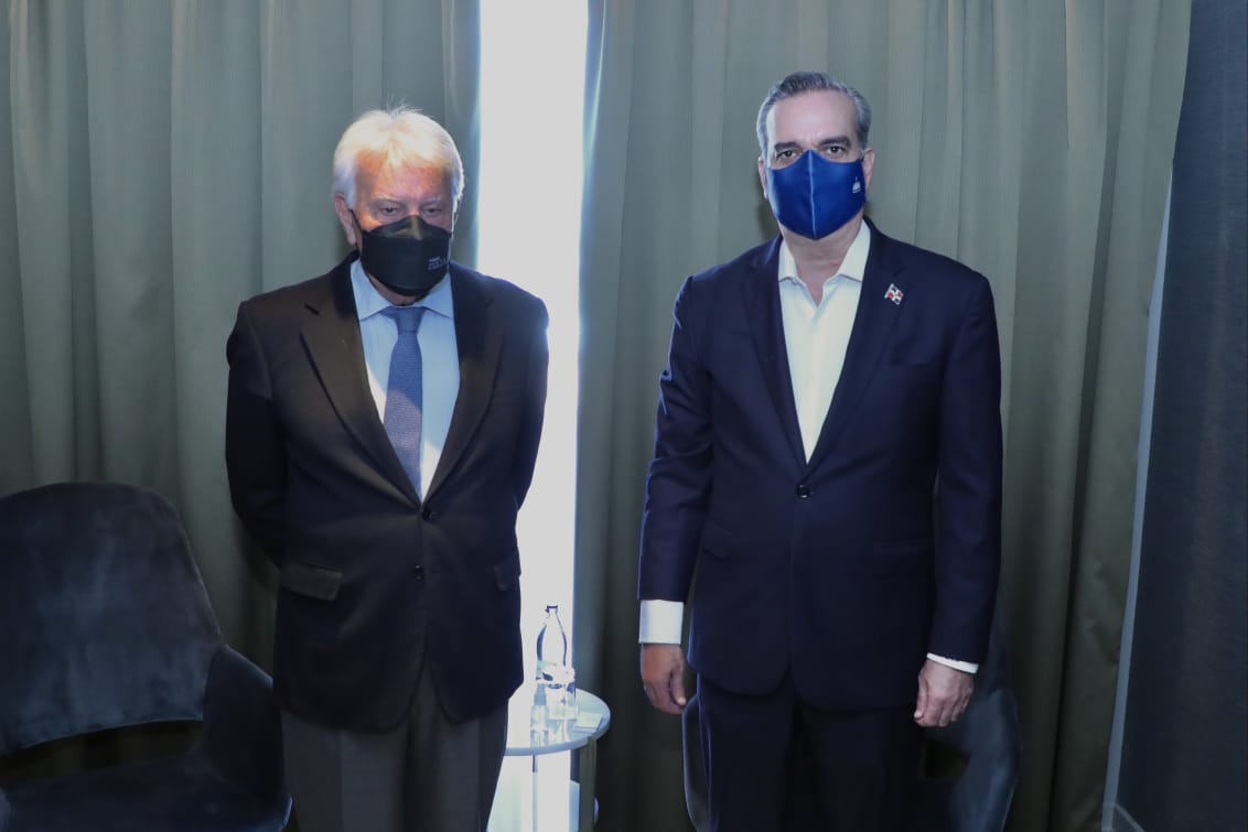 En horas de la mañana, el presidente Luis Abinader también sostuvo encuentros por separado, con los ex presidentes del gobierno español, Felipe González y José María Aznar.