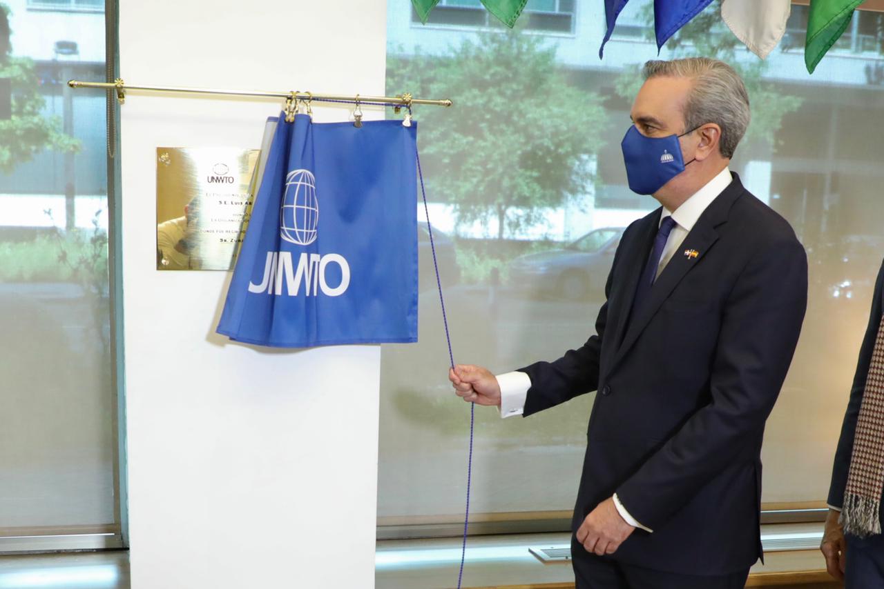 Al finalizar el encuentro, el gobernante develizó una tarja, que junto al escudo dominicano, rinden cuentas de la visita del mandatario a la sede de la Organización Mundial del Turismo, en fecha 18 de abril de 2021.