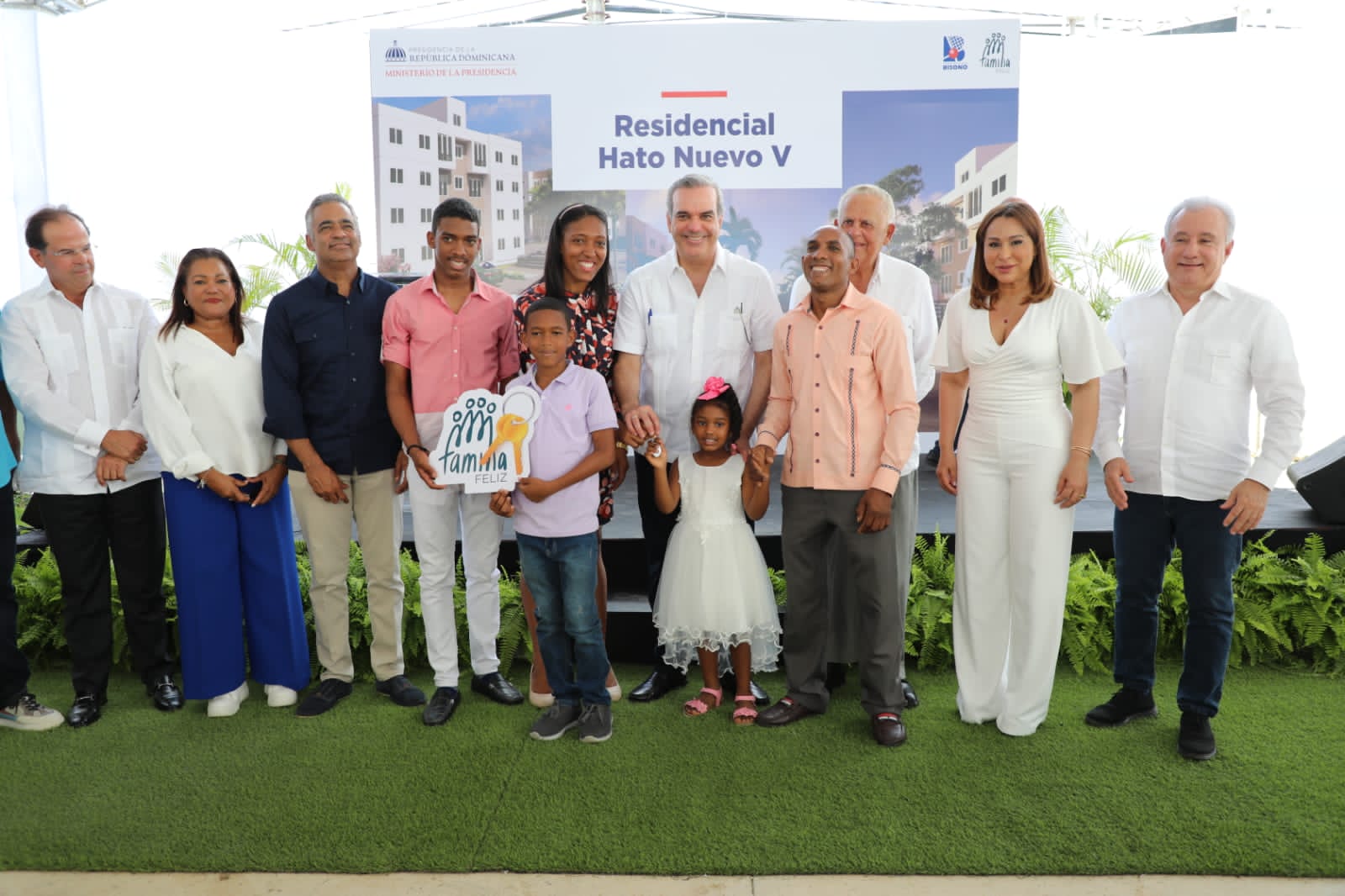 De igual forma, el presidente Abinader entregó 112 apartamentos en el Residencial Hato Nuevo V de la Constructora Bisonó, lo que constituye la primera entrega que realiza el proyecto del Plan Nacional de Viviendas Familia Feliz, del Ministerio de la Presidencia en esta demarcación.