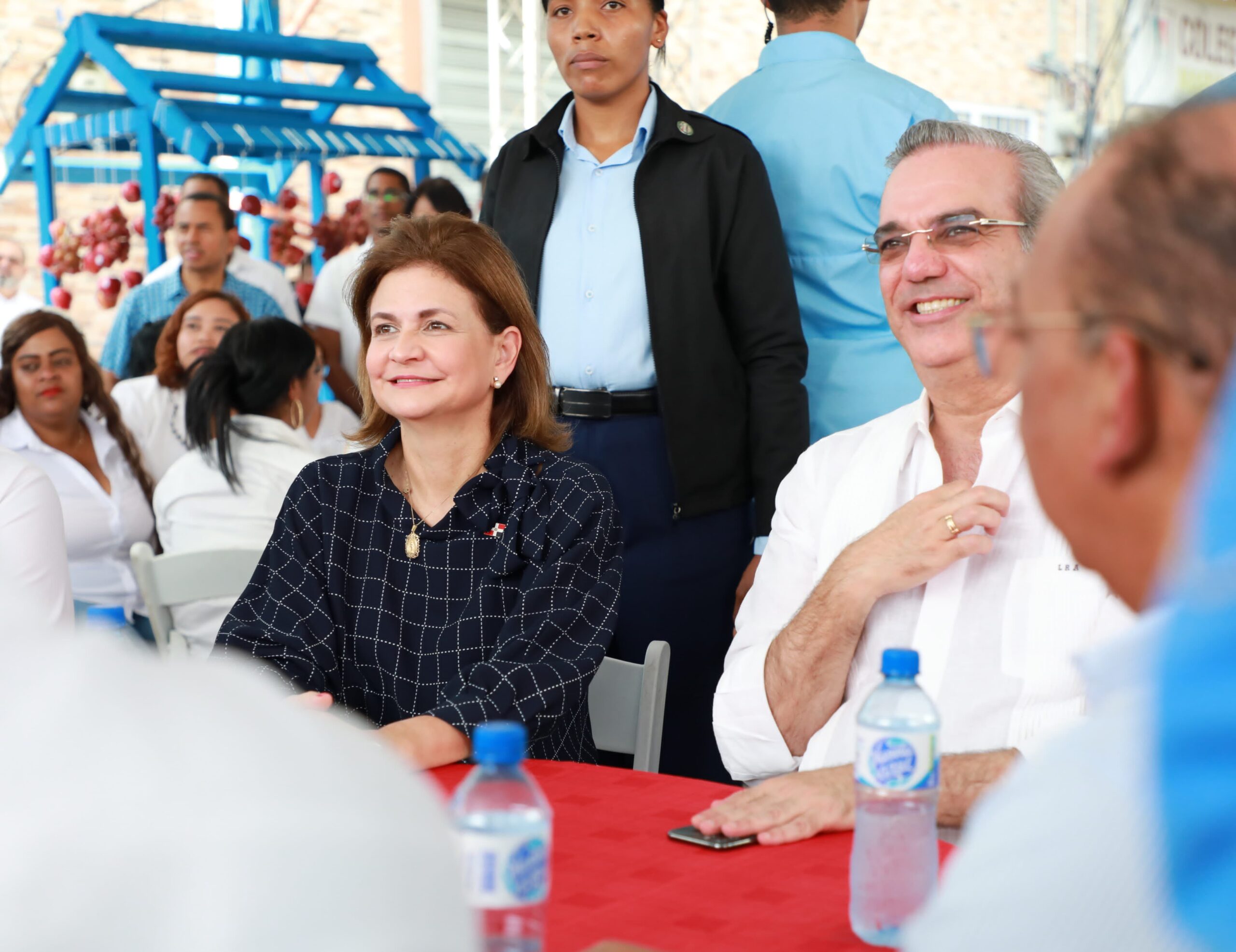 Acompañaron al presidente Luis Abinader, la vicepresidenta Raquel Peña; el ministro de Obras Públicas y Comunicaciones, Deligne Ascensión; los directores, de Propeep, Roberto Salcedo; de Supérate, Gloria Reyes; del Plan Social, Yadira Henríquez; del INESPRE, Iván Hernandez; de Catastro Nacional, Héctor Mirambeaux; de la Policía Nacional, Guzmán Peralta; el presidente de la Comisión Presidencial de Desarrollo Barrial, Rolfi Rojas; el coordinador del Gabinete de Política Social, Tony Peña Guaba; el comandante general de la Fuerza Aérea Dominicana, Carlos Febrillet Rodríguez; el padre Rogelio Cruz y el Doctor Cruz Jiminian.