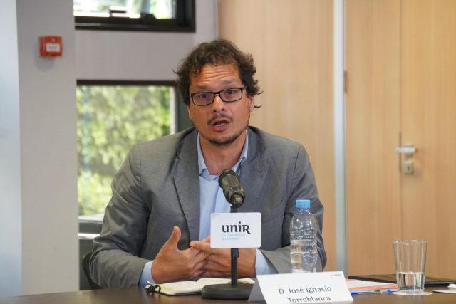 Con Emilio Lamo de Espinosa, académico de la Real Academia de Ciencias Morales y Políticas y vicepresidente de Unir; Ana Palacio, abogada especializada en Derecho Europeo, Derecho Internacional Público, Arbitraje y Mediación, ha sido miembro del parlamento europeo, ministra de Asuntos Exteriores de España y miembro del parlamento español; José Ignacio Torreblanca, profesor titular en el Departamento de Ciencia Política y de Administración de la Universidad Nacional de Educación a Distancia (UNED) y director de la oficina en Madrid del European Council on Foreign Relations (ecfr.eu) y Rafael Puyol, presidente de UINIR.