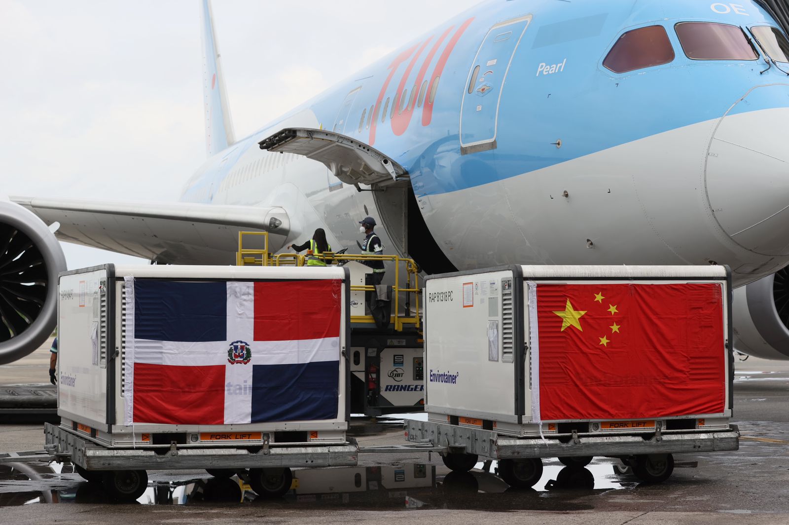 Santo Domingo.– La vicepresidenta de la República Dominicana, Raquel Peña, recibió la tarde de este martes un embarque de 3, 000,000 de dosis de vacunas SINOVAC procedentes de la República Popular China.