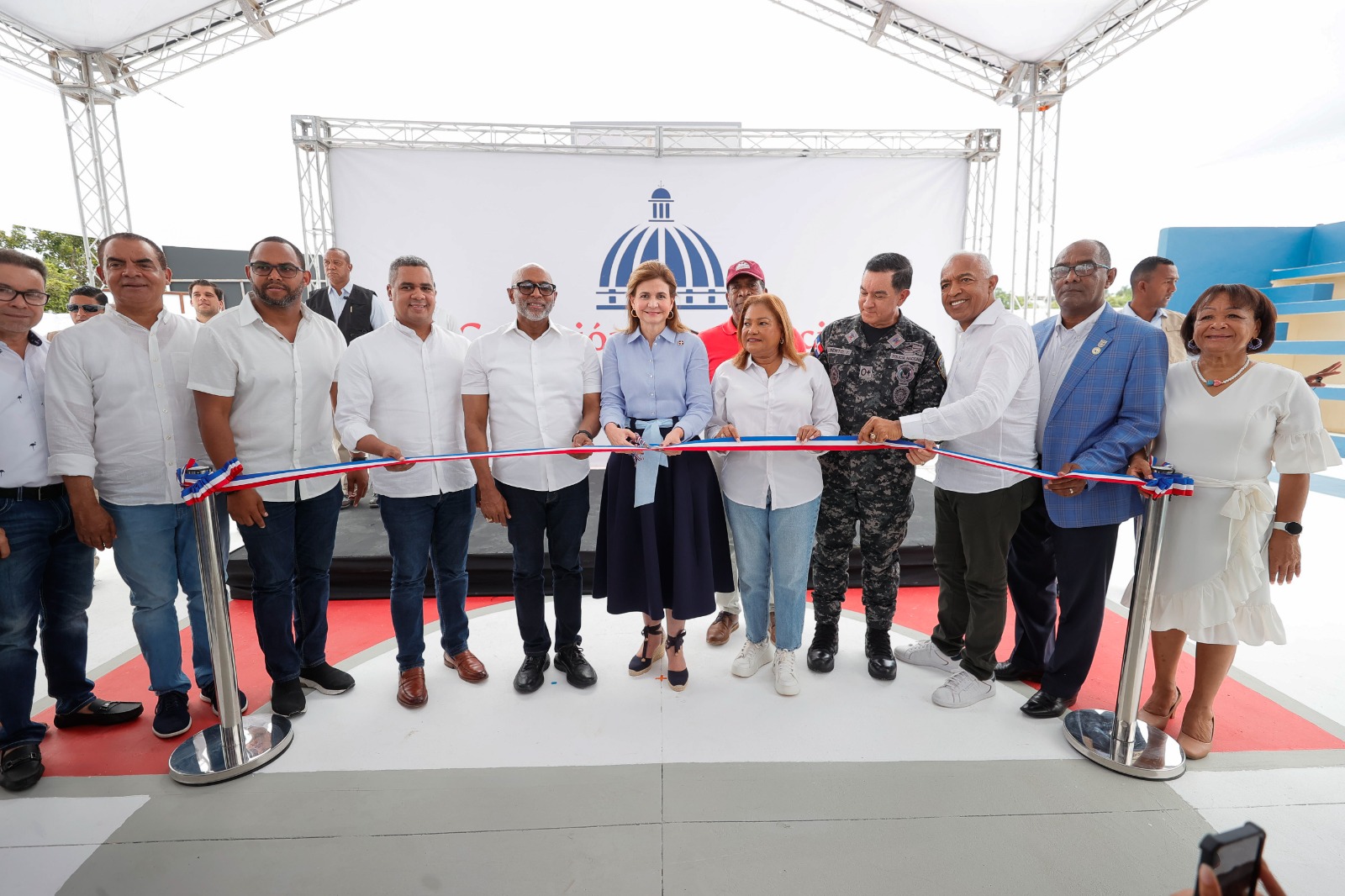 Previamente, la vicepresidenta encabezó la inauguración del destacamento policial y la cancha de baloncesto y voleibol de Las Lilas, en Los Tres Brazos, obras que beneficiarán a más de 500 comunitarios de la zona.